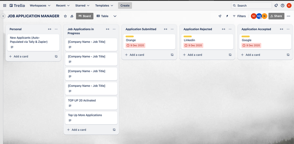 Receive access to your personalized Trello board where you can track the status of each application in real time – from submission to response.